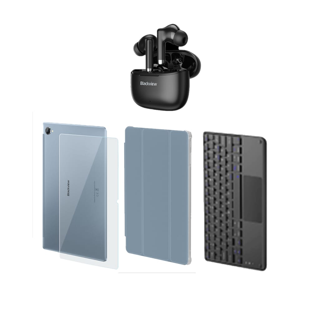 The Blackview TAB80 ** Bundle** Tablet, Cover, Keyboard, Screen guard + Airbuds 4 ( wireless headphones) 10.1″, 800 x 1280 HD